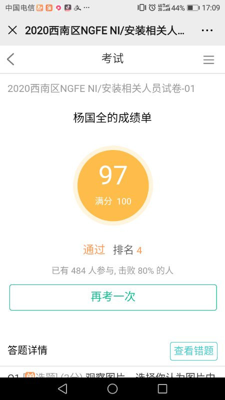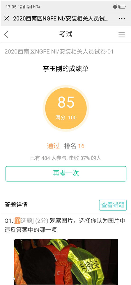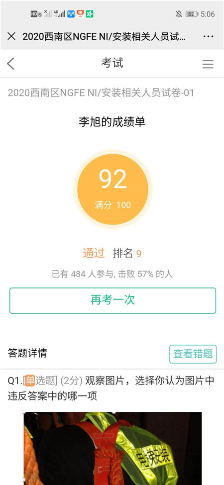 二:培训后的安全考试合格证明(部分)